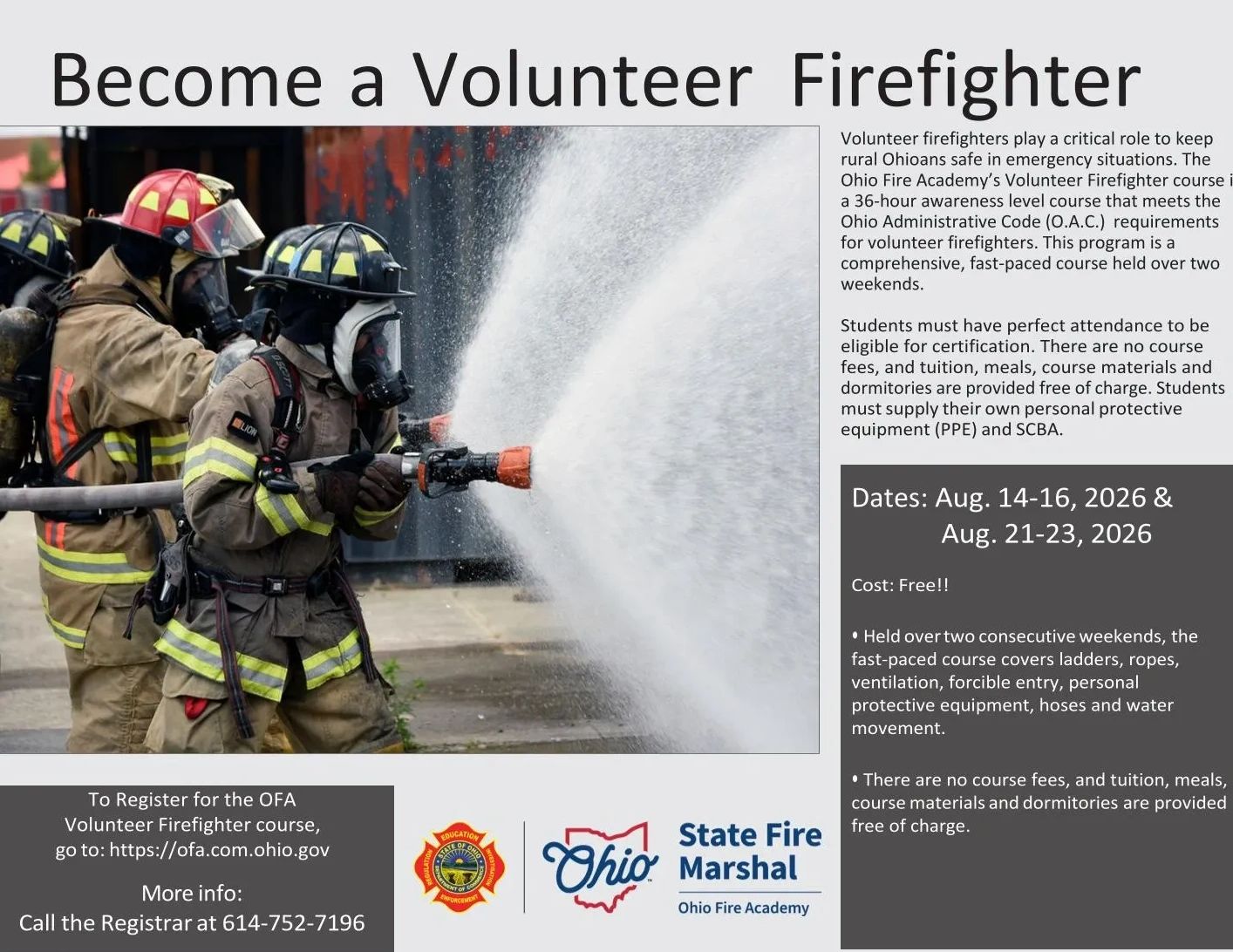 The state now offers free training for volunteer departments so individuals can get the necessary 36-hour training required to become a volunteer firefighter without the potential cost of $500 to $1,000.